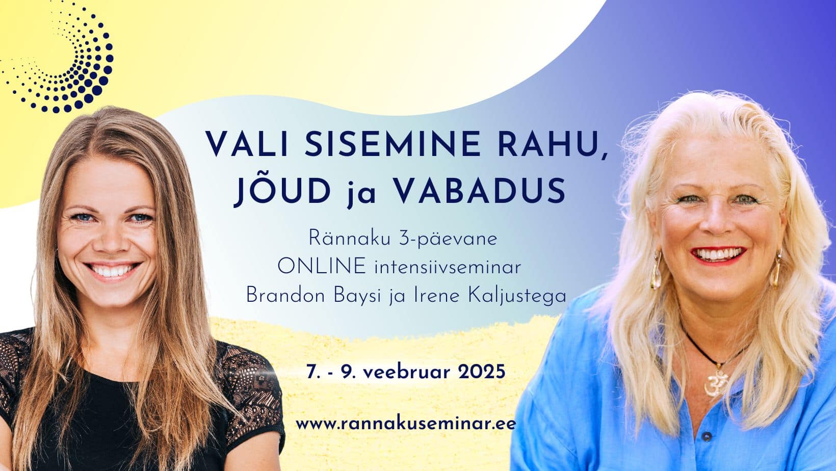 Kui oled valmis astuma suurema sammu isikliku vabaduse, rahulolu ja rõõmu juurde, siis oled südamest oodatud osalema ka Rännaku intensiivseminaril koos Brandon Baysi ja Irene Kaljustega. Leiad selle kohta täpsema info siit.